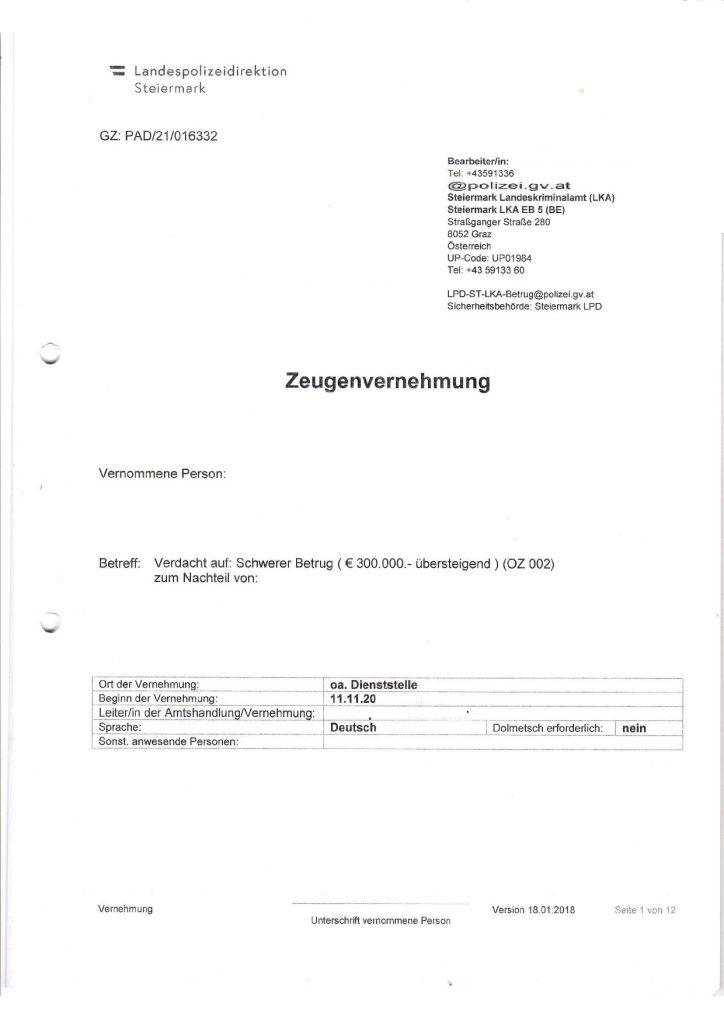 Zeugenvernehmung der Landespolizeidirektion Graz 2018