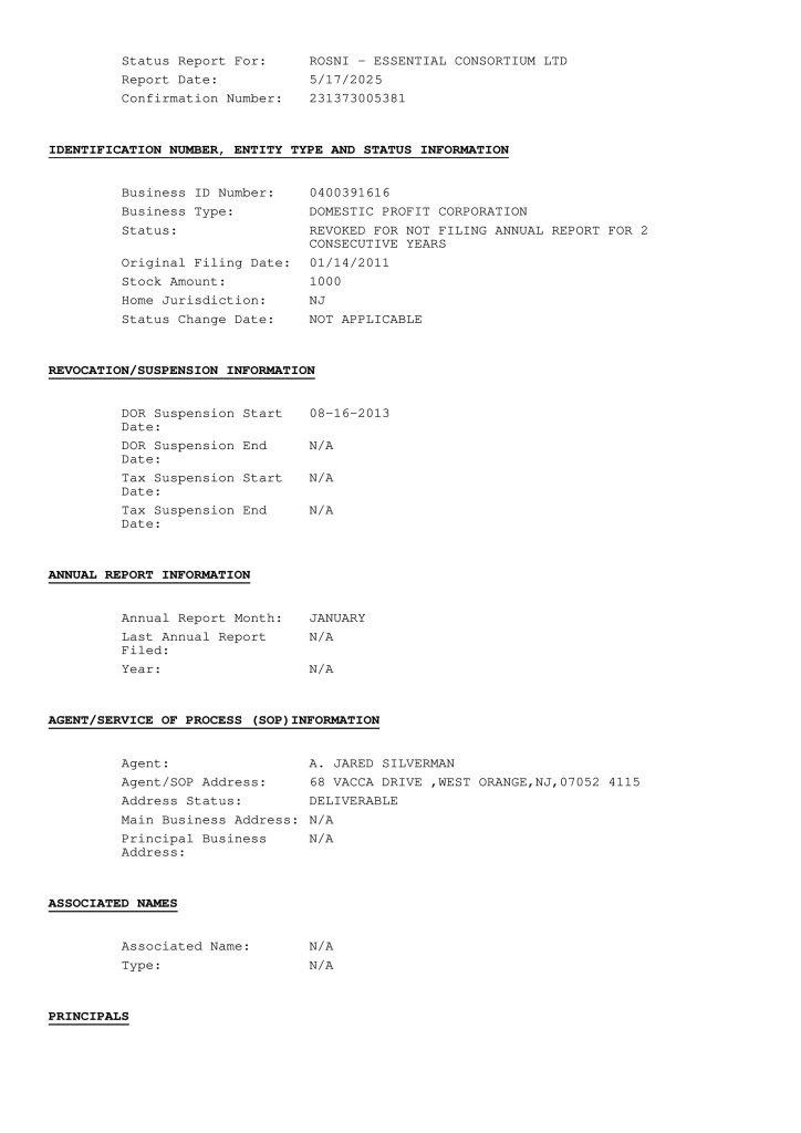 ORIGINAL RECHNUNG DER 2012 INSOLVENTEN ROSNI LTD