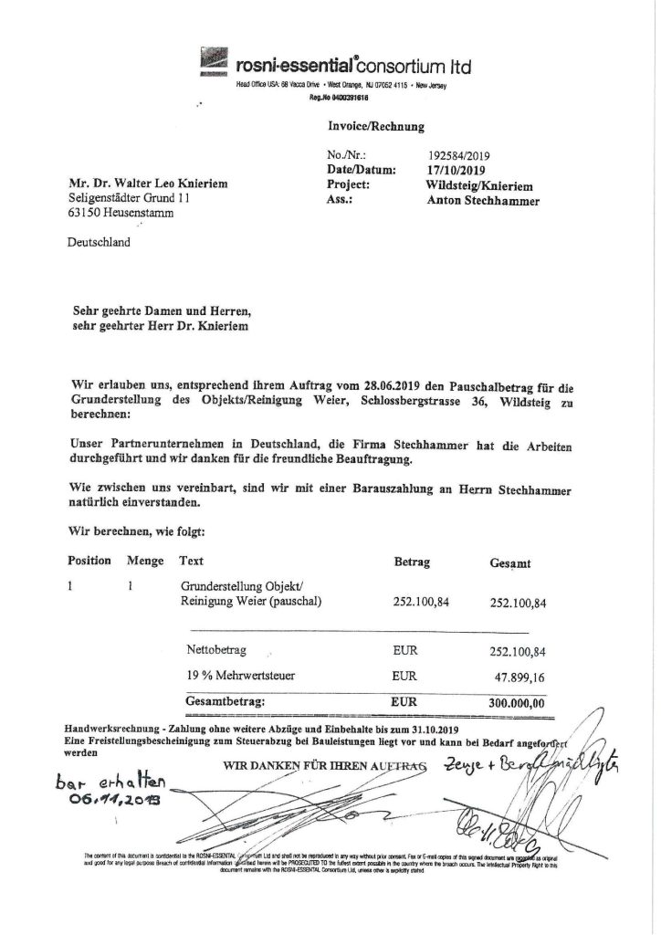 €1.040.000.- Mario Grothe erhielt extra €200.000.-, sozusagen Vorauszahlung auf die kommenden gemeinsamen Verbrechen zum Nachteil von Walter Knieriem.